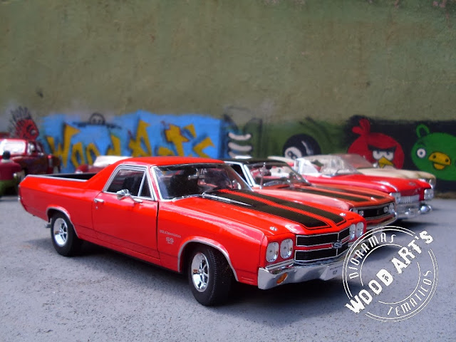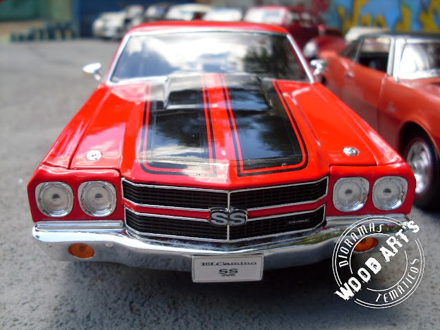 Todas as miniaturas são em escala 1:18; mas o cenário já é um pouco diferente.